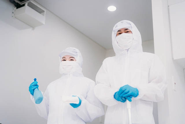 業者は、感染症予防と尊厳保持の観点から、適切な手順を踏みながら作業を進めます。