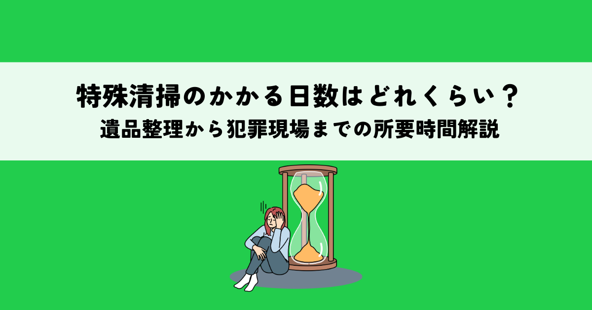 それでは、特殊清掃の一般的な所要時間から、特定の状況に応じた時間要因、さらには異なるタイプの清掃が必要な日数まで、詳しく解説していきましょう。
